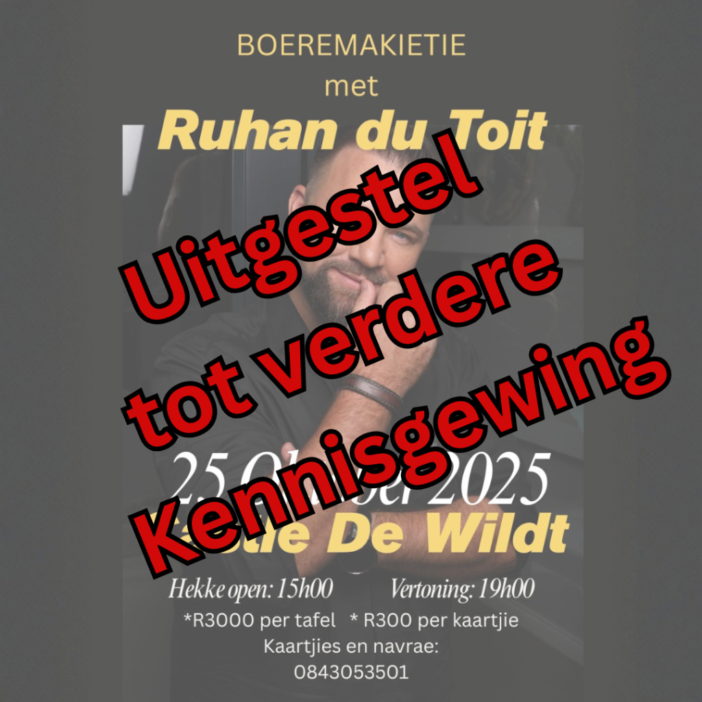 Kaartjies en navrae: 0843053501
