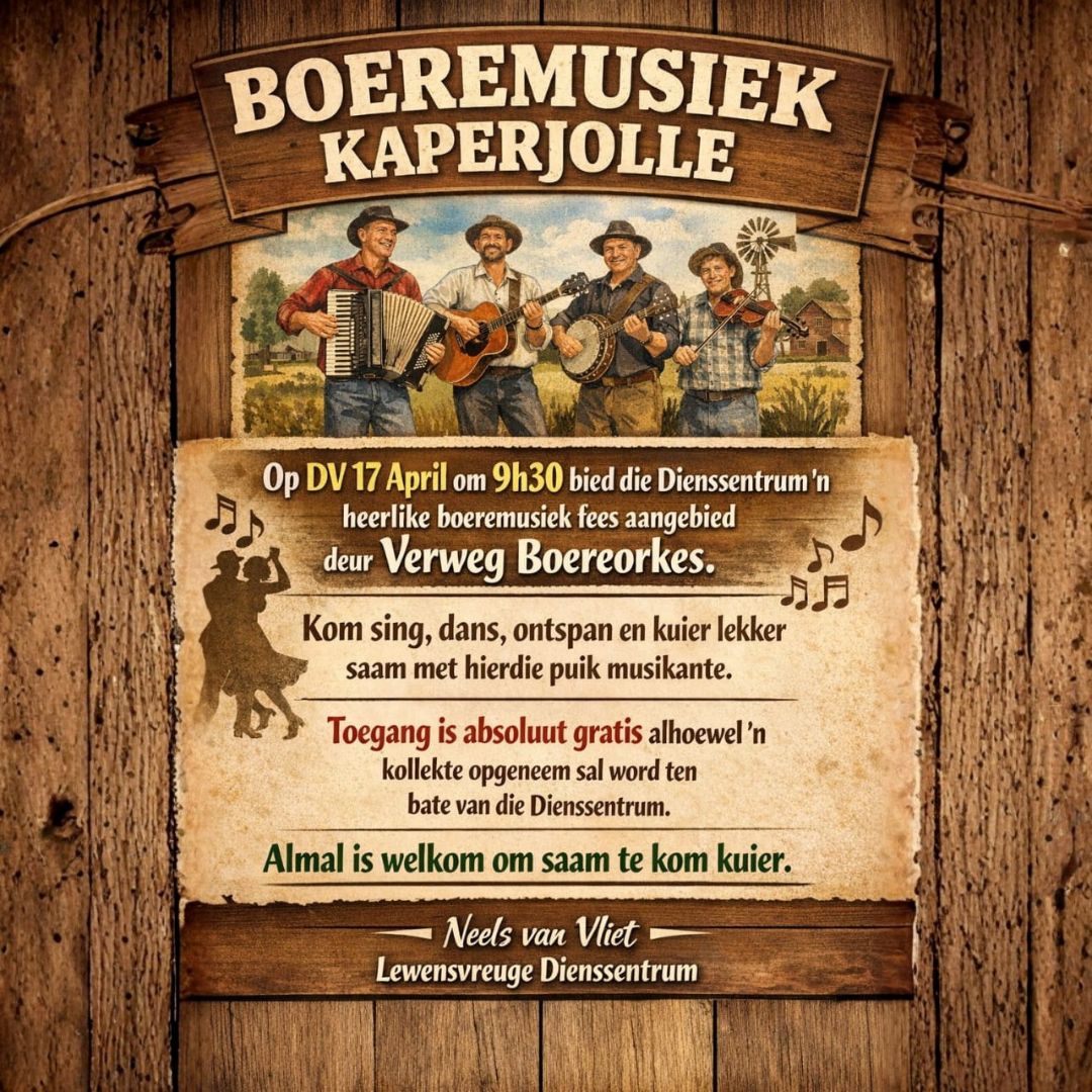Heerlike boeremusiek fees aangebied deur Verweg Boereorkes.