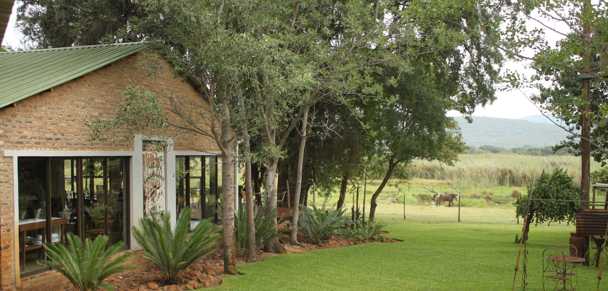The beautiful garden hosts guinea fowl, squirrel, Muscovy ducks and tamed calves from time to time. Marula- and Tamboti Trees give shelter to a vast birdlife of which the Laughing Dove is but one; therefore the guestrooms are identified by the names of a few of the most commonly