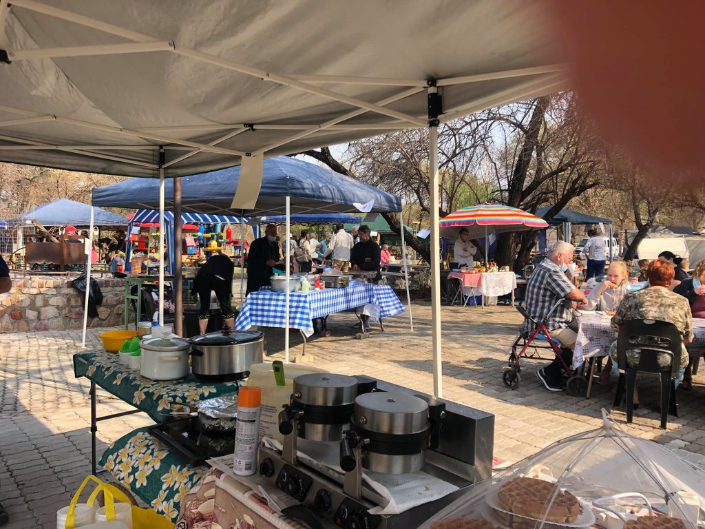 Gesellige saamkuier in die bosveld met heerlike eet-en drinkgoed en allerlei interessanthede om te koop