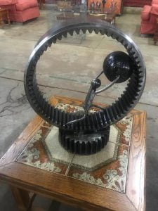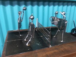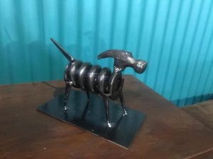 Joggie se kunswerke word gemaak uit herwinde staal, voertuig- en masjienparte en ander meganiese onderdele.
