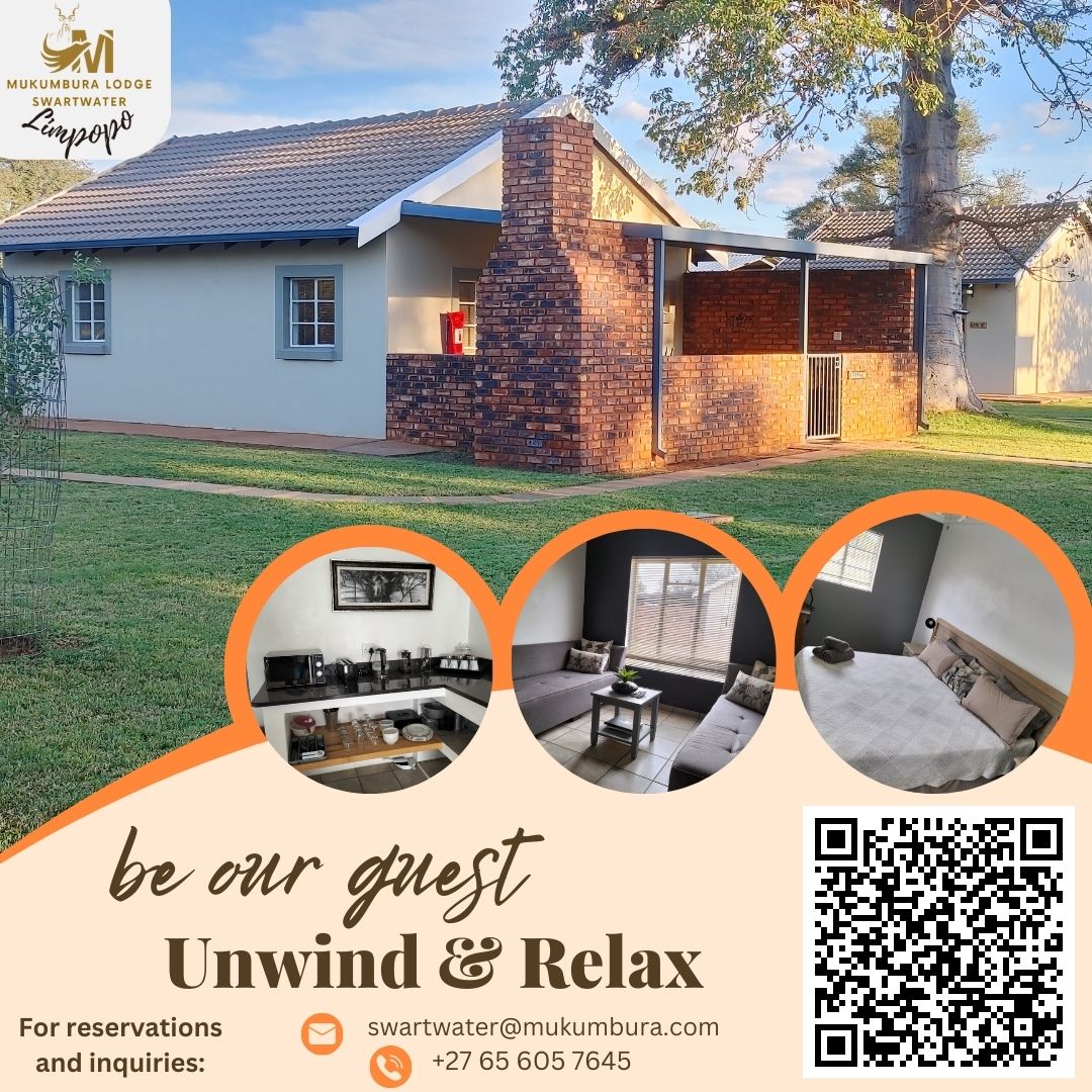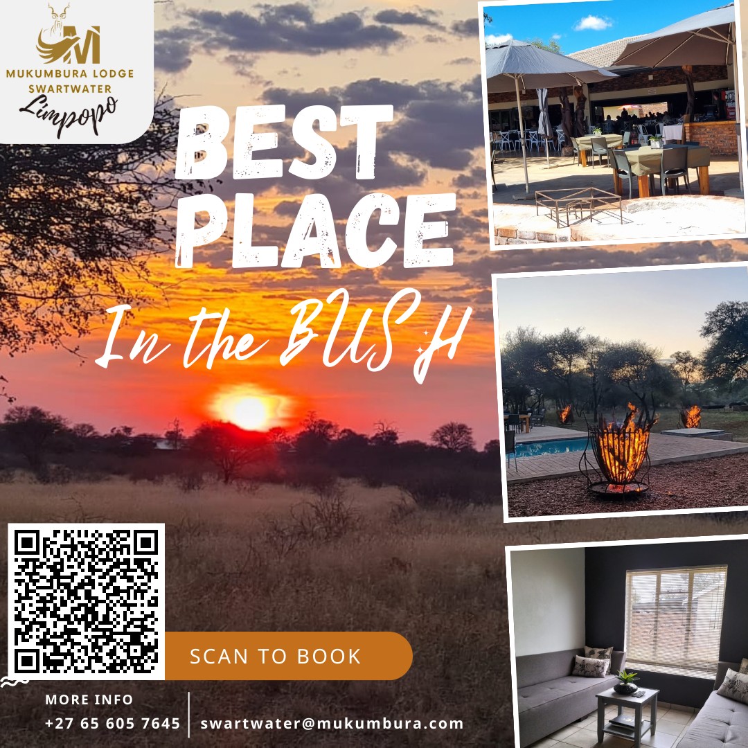 Mukumbura Swartwater is on a 2000 hectare game farm located in the middle of the bushveld near the small town of Swartwater and the border post Groblersbrug which is situated between South Africa and Botswana. Mukumbura Swartwater also boasts an exquisite wedding & conference venue.